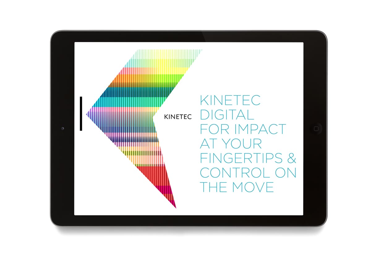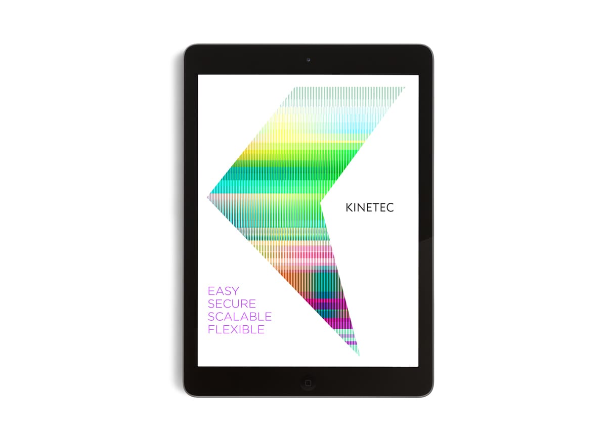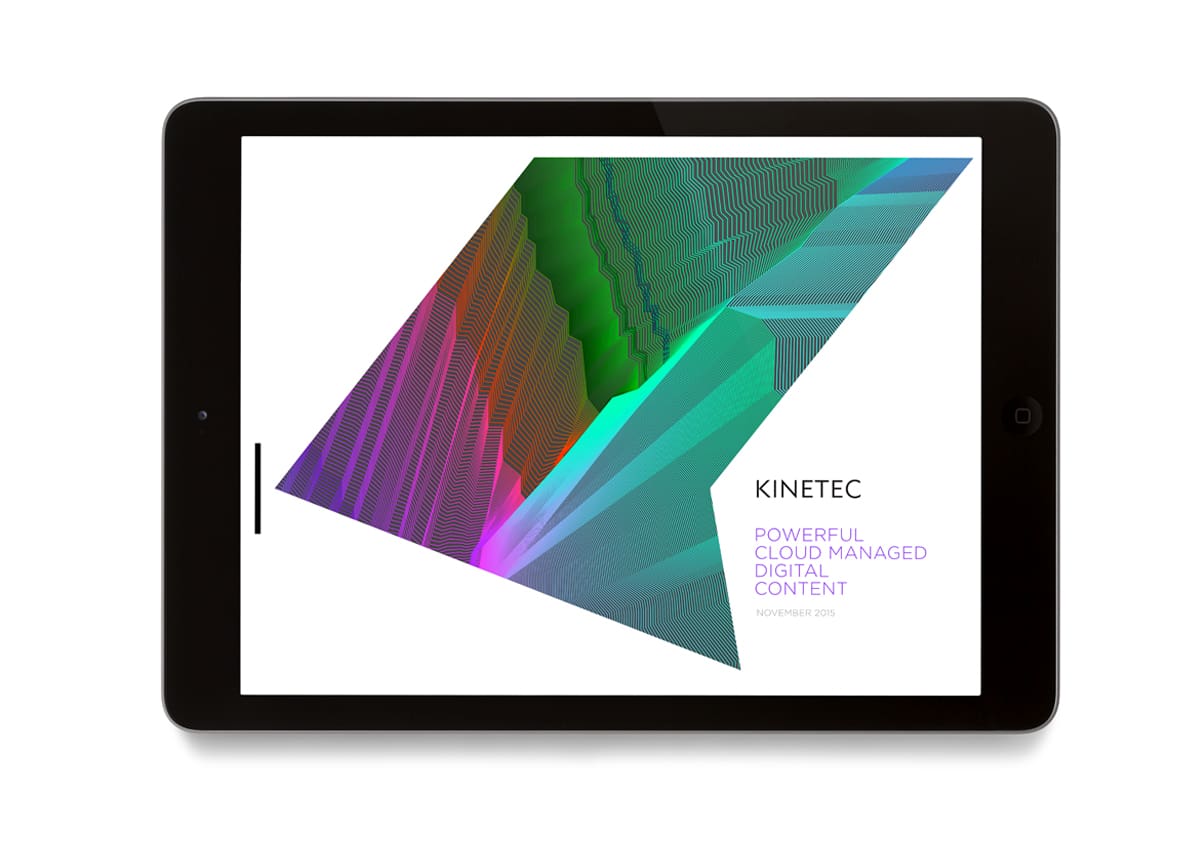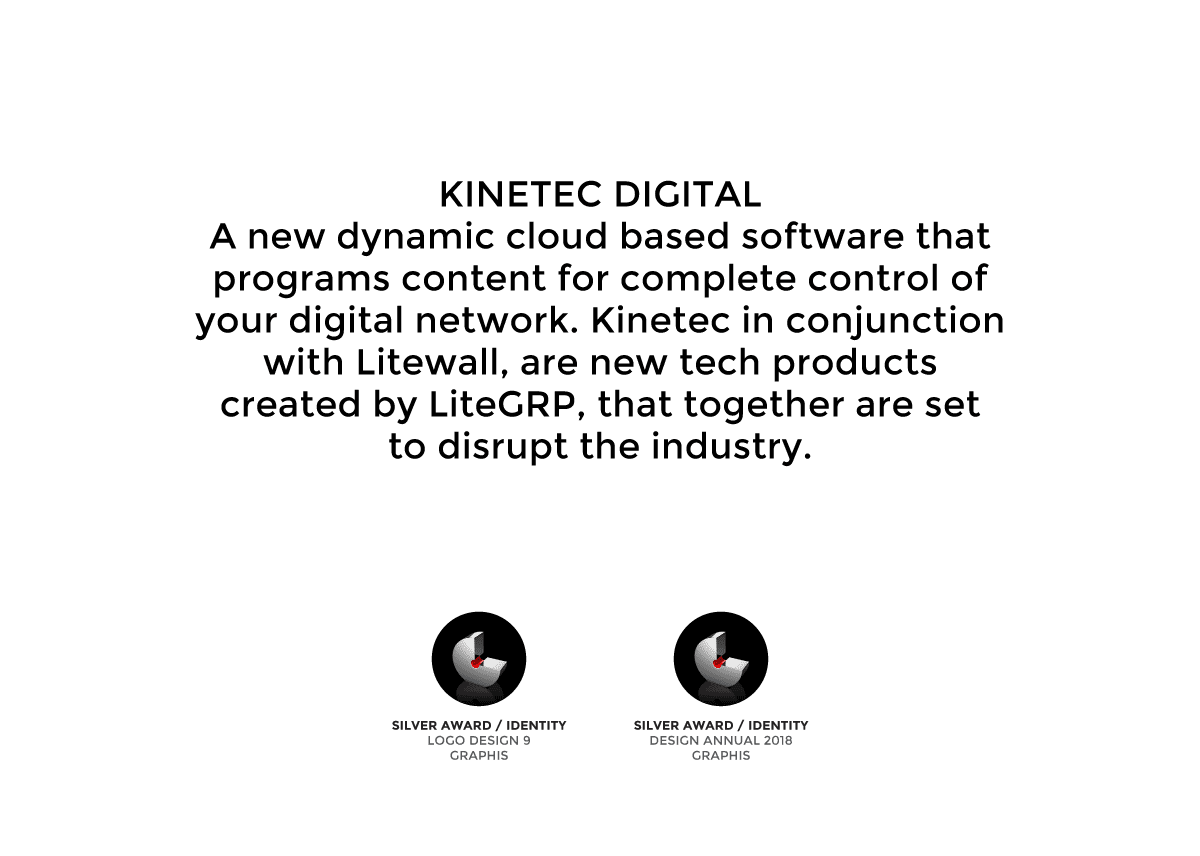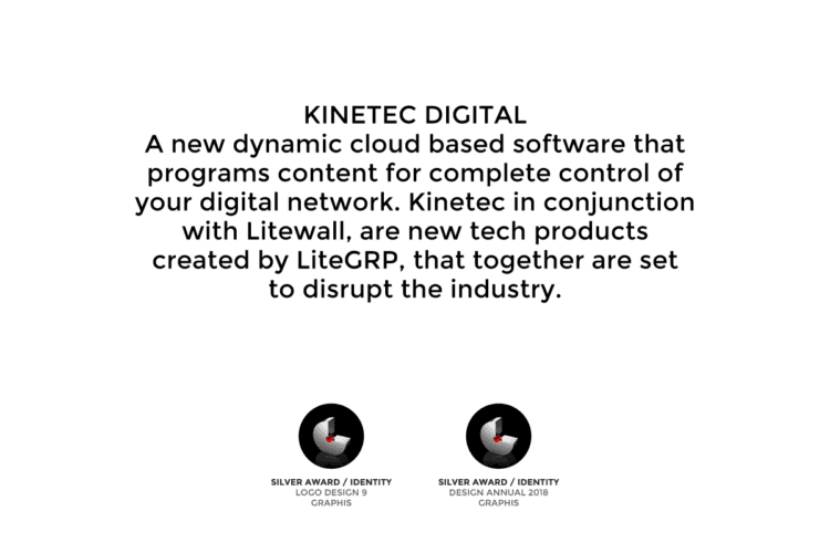We created the new name and responsive identity for Kinetec in order to powerfully portray the essence of the product. It is easy, secure, reactive, and scaleable and as the name suggests, art in motion. Any display devices allocated on demand connect Litewall and any digital devices to create a digital network. The identity visualises the dynamic âKâ as media projecting from a screen, the shape simply responding to each format and application with ease. Using abstract colour to symbolise media and video gives us a powerful and artful mark that is unique, everchanging and dramatic.