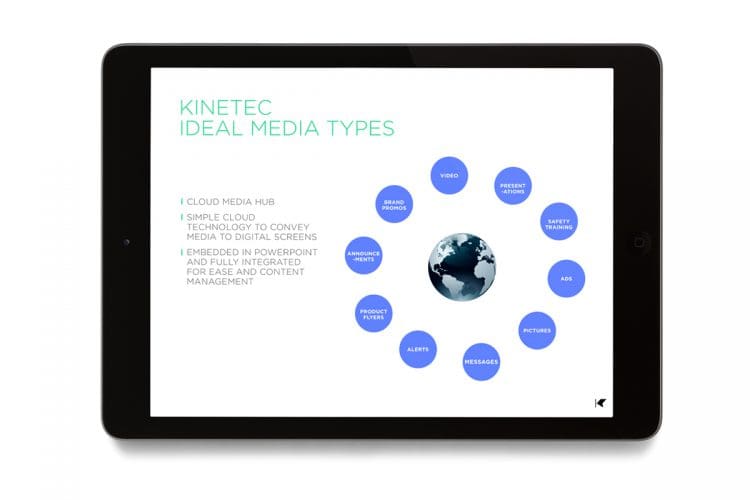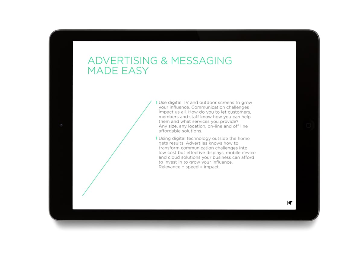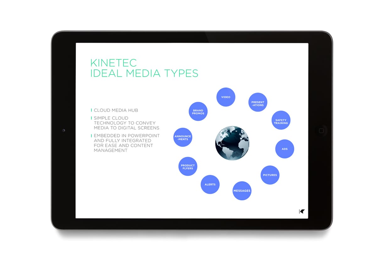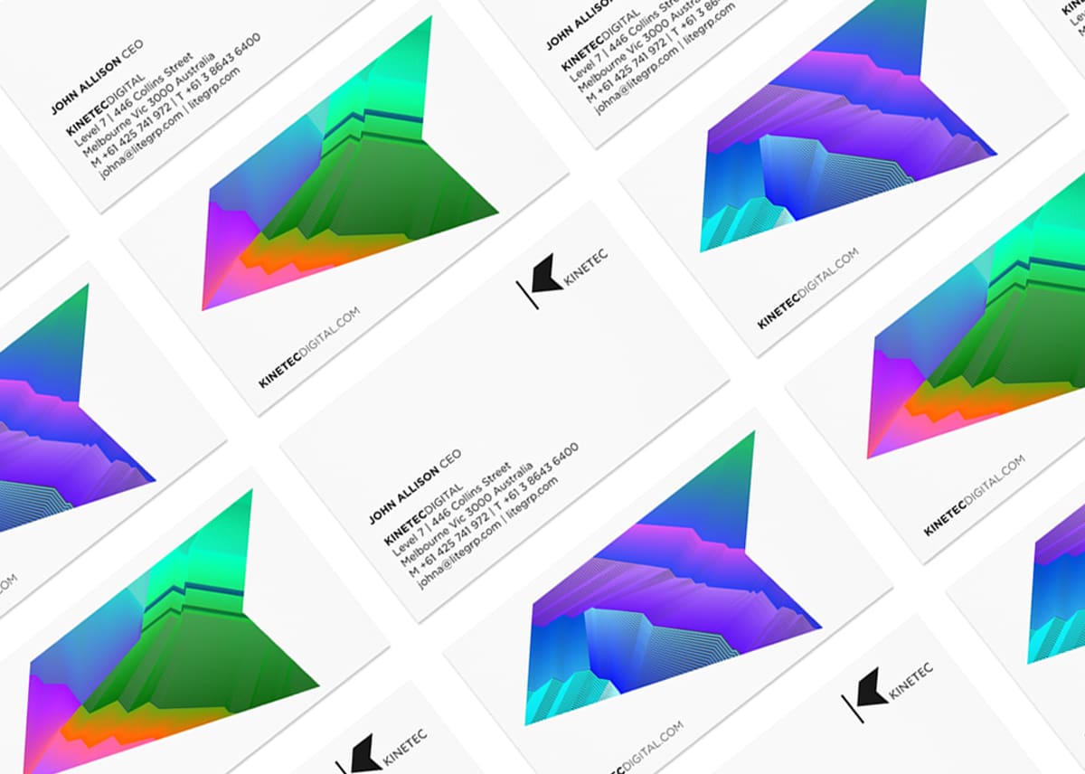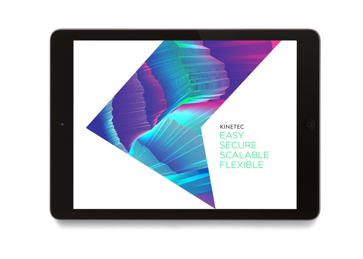We created the new name and responsive identity for Kinetec in order to powerfully portray the essence of the product. It is easy, secure, reactive, and scaleable and as the name suggests, art in motion. Any display devices allocated on demand connect Litewall and any digital devices to create a digital network. The identity visualises the dynamic âKâ as media projecting from a screen, the shape simply responding to each format and application with ease. Using abstract colour to symbolise media and video gives us a powerful and artful mark that is unique, everchanging and dramatic.