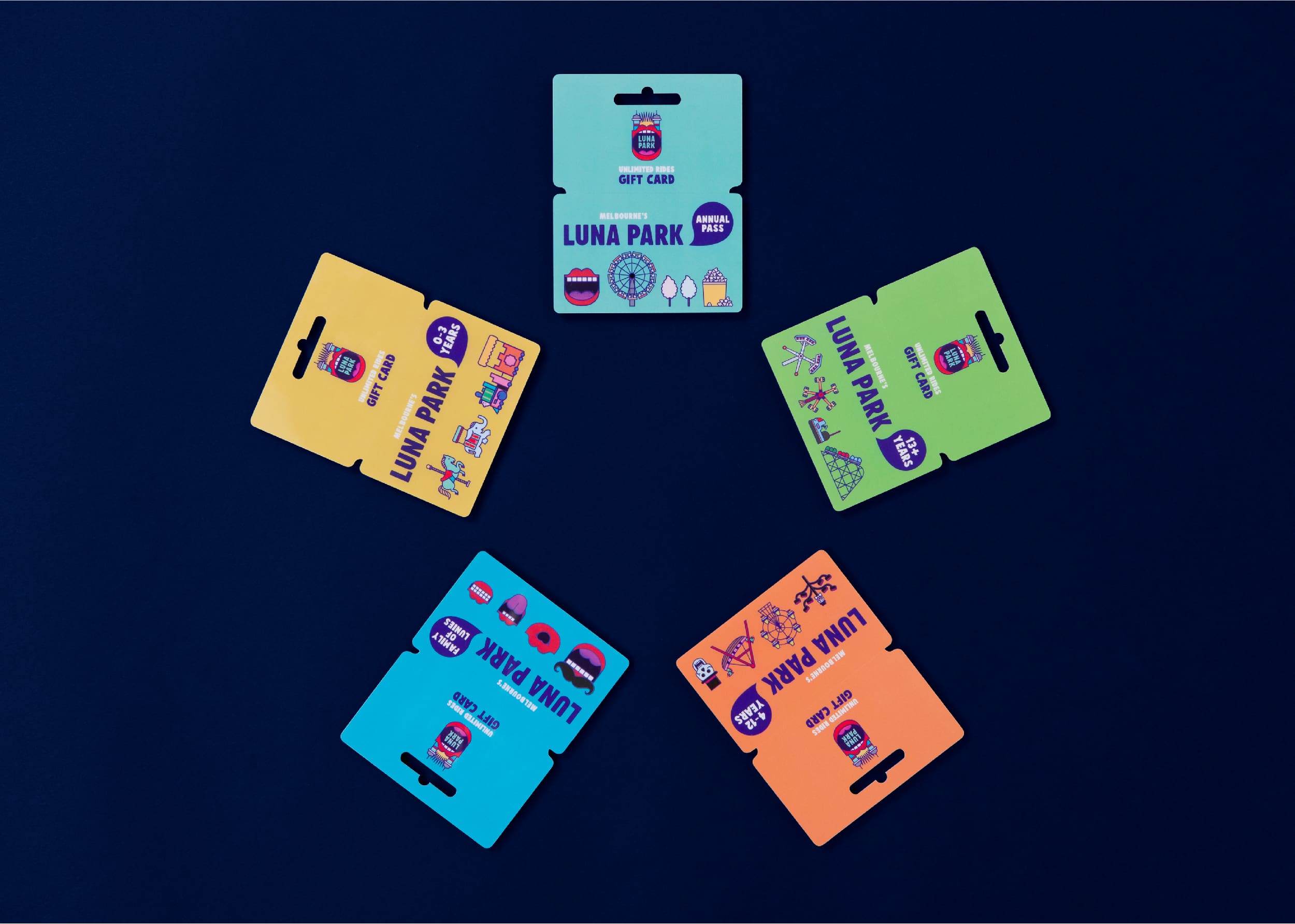 Luna Park wanted to reinvigorate their Brand and to remind their audience how liberating it is to have fun, giggle and smile. The identity is designed to be a series, with the mouth conveying the multiple personalities of it’s audience and holidays and events throughout the year, so that the brand is always fresh, relevant and can adapt to any celebration or cause.