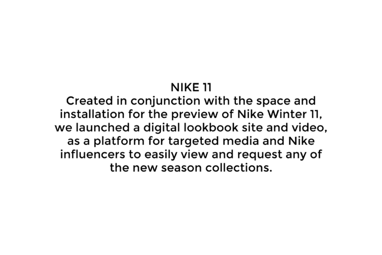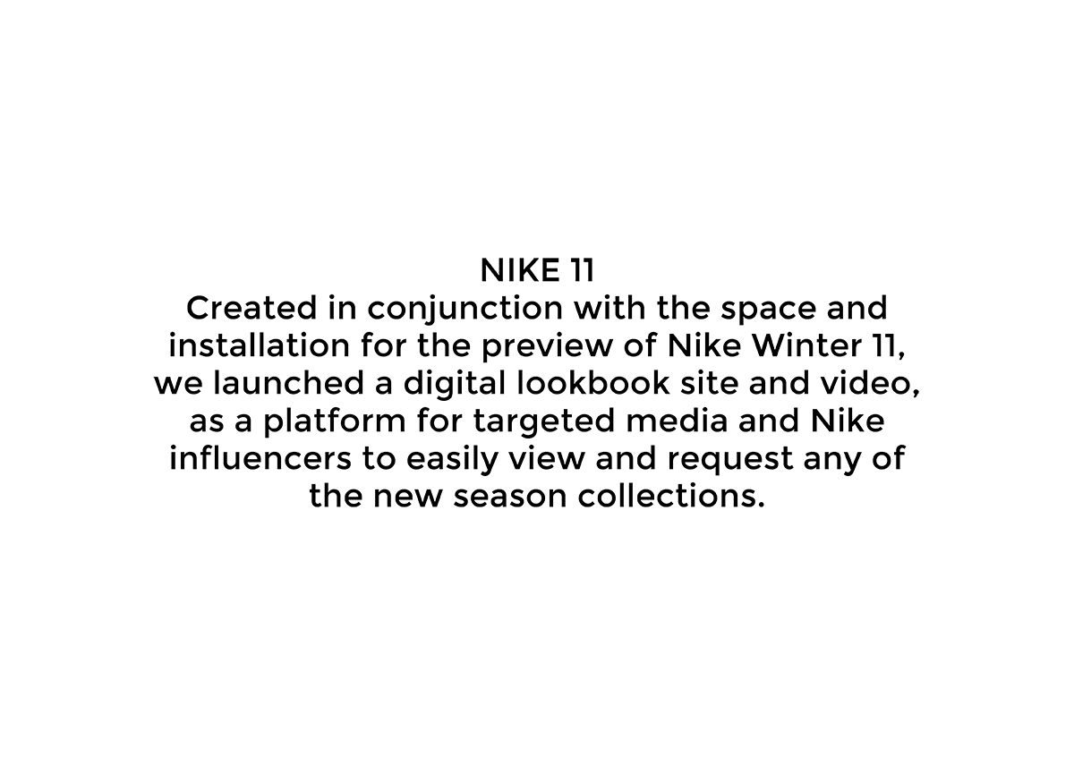 In conjunction with the space for Winter 11, we launched a digital lookbook site and video and commissioned Superfuture to create customised maps within a notebook featuring Nike along with Superfuture’s edit on shopping and lifestyle destinations of Melbourne and Sydney.